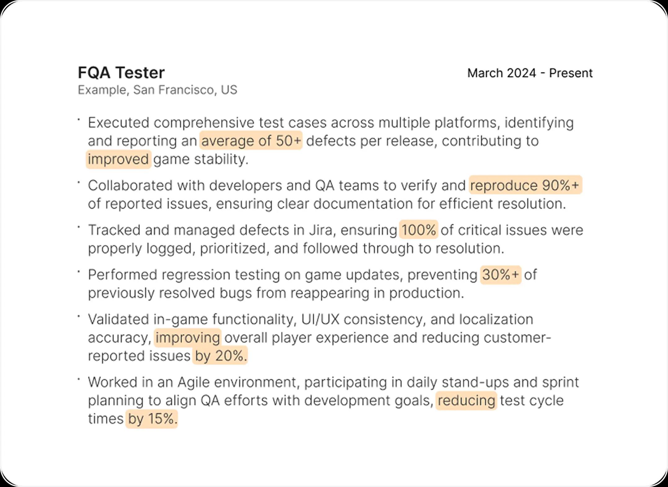 Use data and numbers to emphasize your results. FAANG recruiters value quantifiable and measurable outcomes.